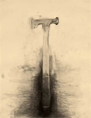Feng's piece, "Floating City" is what i consider as very original to the rest of the things we've seen in the exhibition: composed of hundreds of tracing paper buildings of various sizes, their laser- printed details deriving from images of city architecture, which are grouped in dense clusters and hung from the ceiling with transparent fish tackle thread. Its neither a sculpture, drawing or a painting and it combines the digital media (laser printing) with hand-made art.